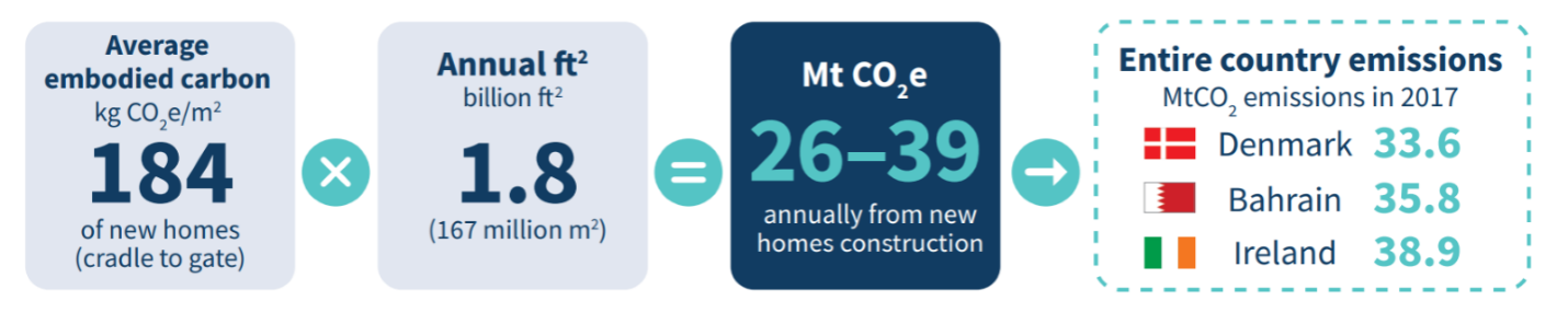 Summary of studies demonstrating the scale of embodied carbon from new homes in the US