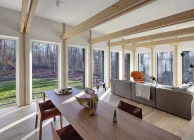 • Windows: Triple-pane, low-e, argon-filled, aluminum-clad wood-framed, fixed awnings, U=0.14-0.18, SHGC=0.36.