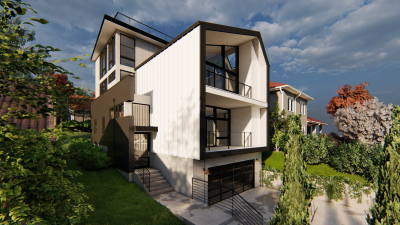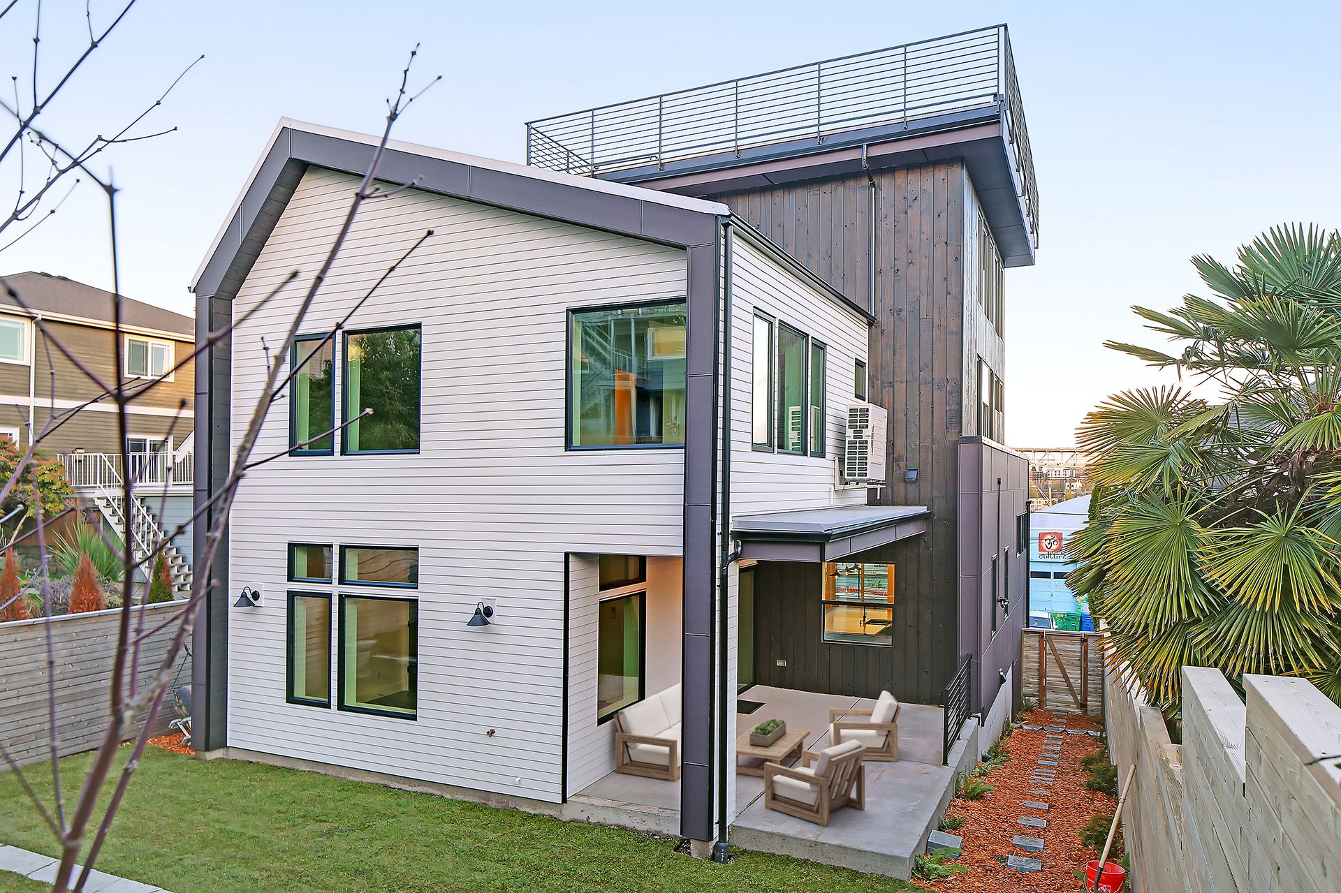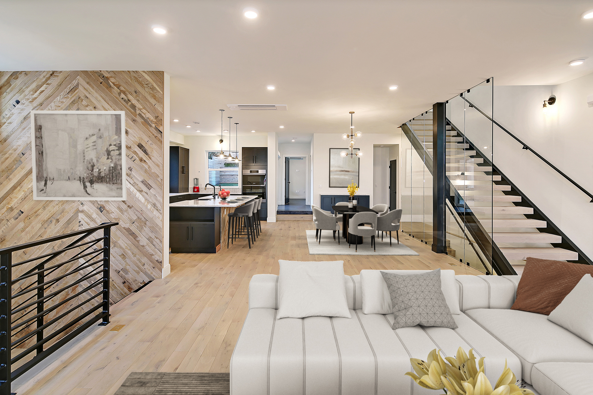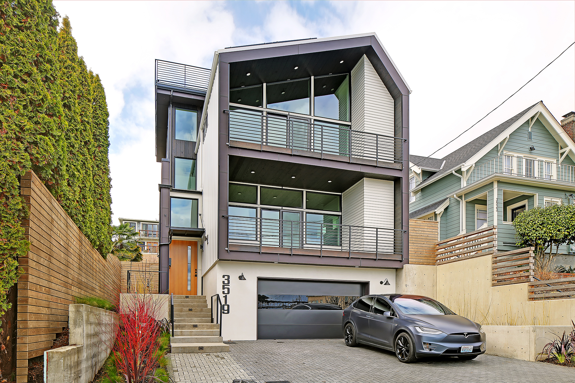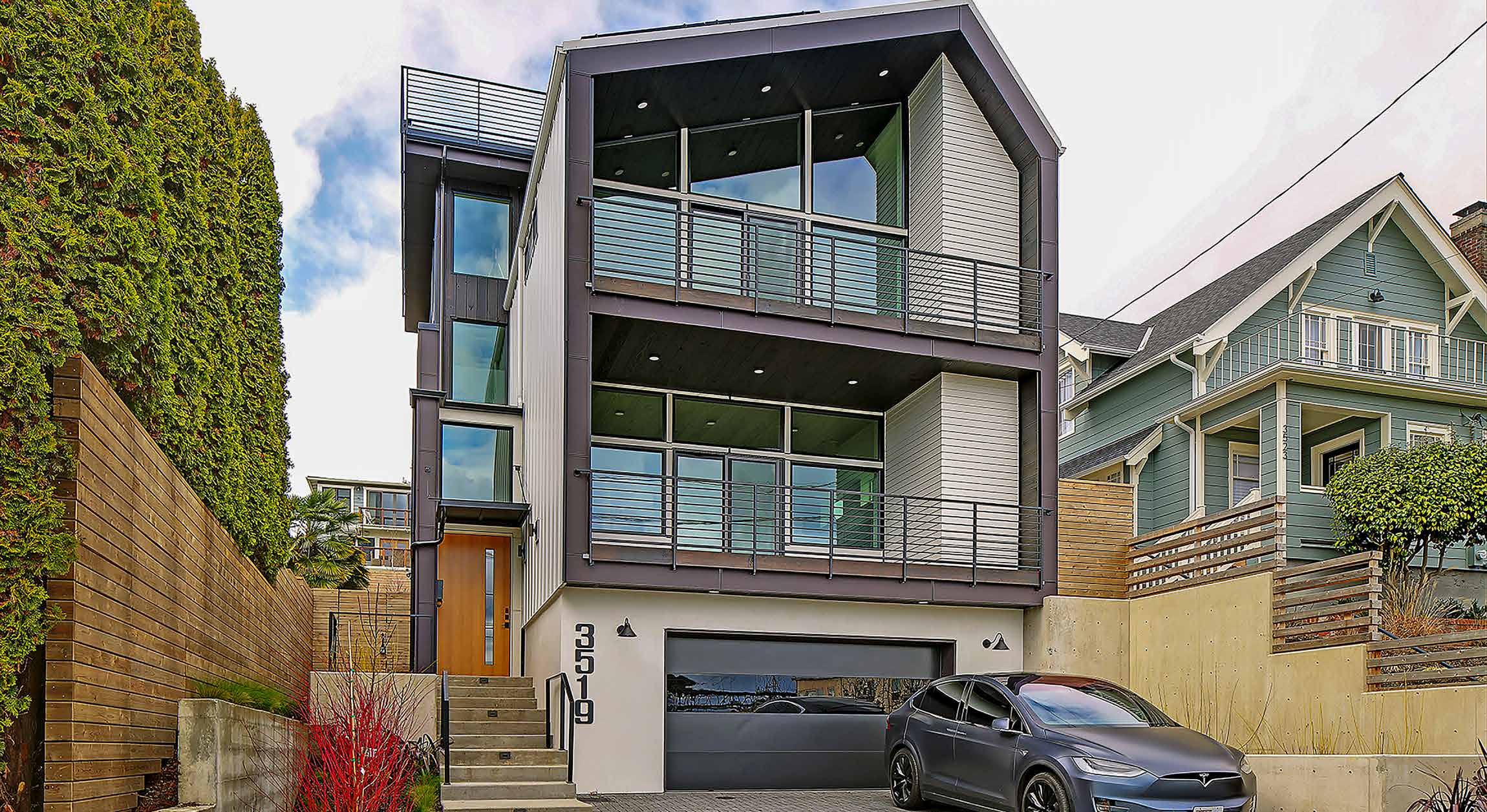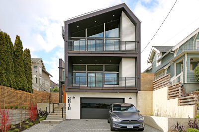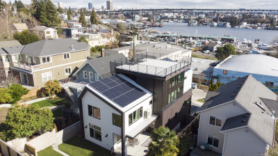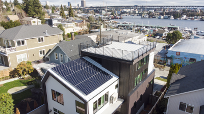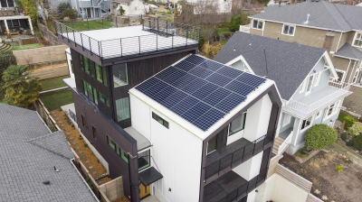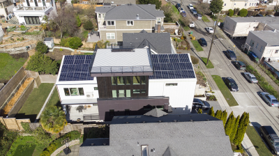 • Other: Electric vehicle charging station, sustainably harvested floors, stairs, treads, siding. High-recycled content countertops, cabinets, tile.