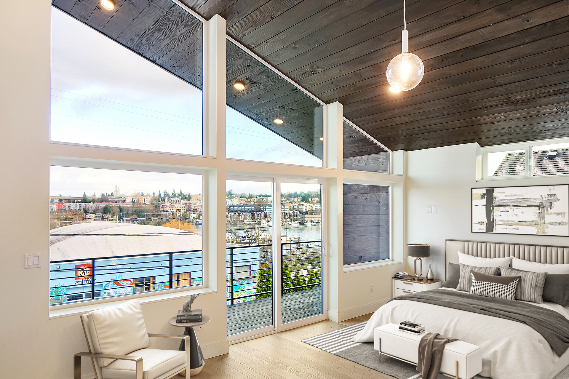 • Roof: Gable roof: 16" joists, plywood sheathing, 3" rigid polyiso, hard board, standing seam metal on pitched or TPO membrane on flat roofs.