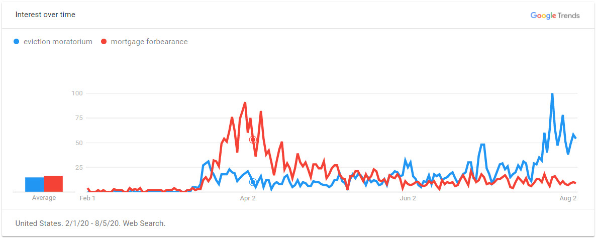 Google Trends shows a recent rise in searches for “eviction moratorium”.