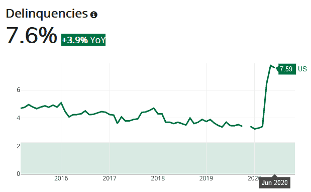 Moreover, the Washington Post’s Andrew Van Dam explains “If delinquencies lead to foreclosures, as the forbearance time period expires, we could see an increase in the number of properties on the market. It may be compounded by other stressed buyers, who need to cash out of their home to pay bills as the recession continues. The supply glut could increase further if shutdowns are lifted and homeowners who held off on selling during a pandemic suddenly flood the market.”